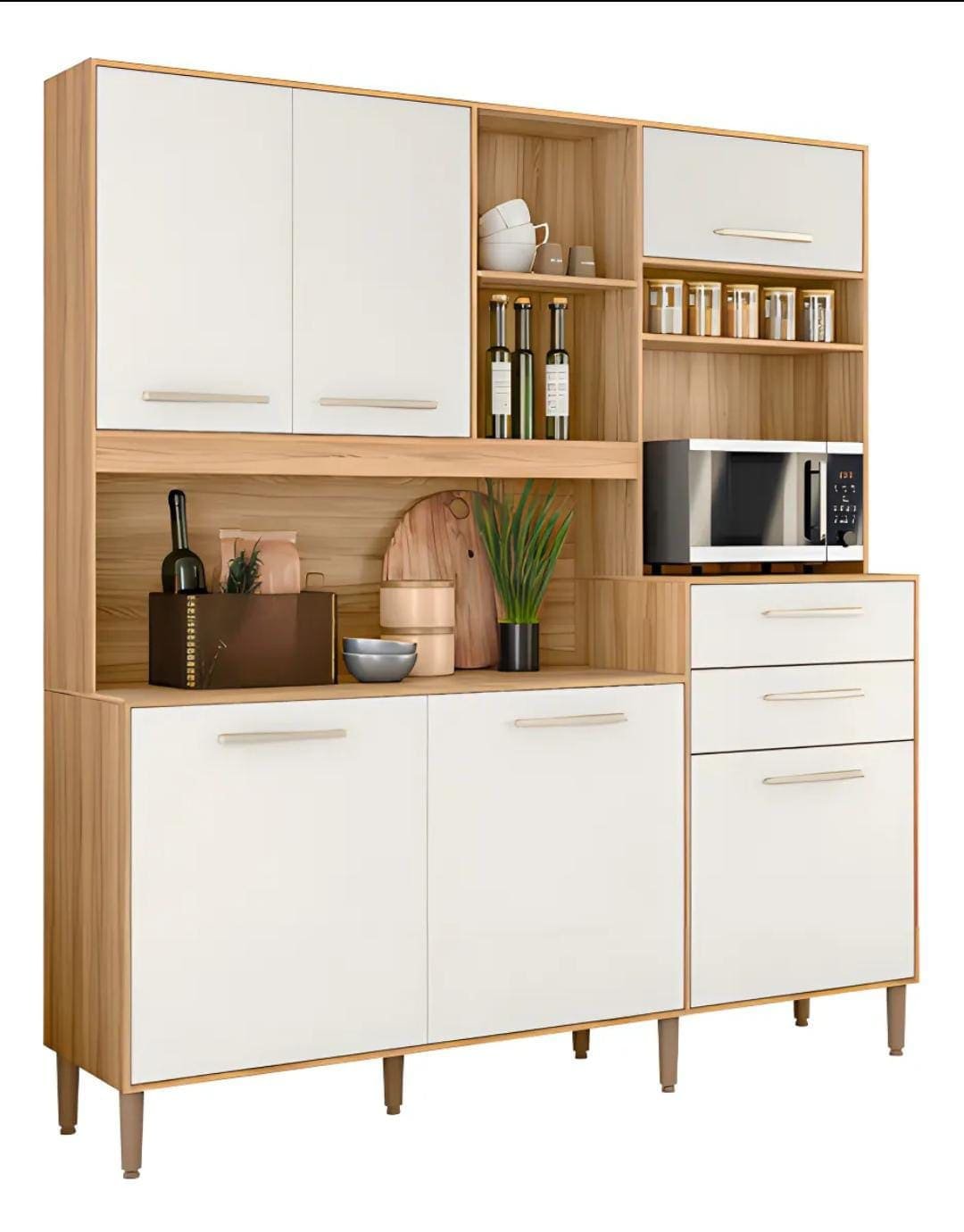 Este kit foi projetado para oferecer uma estética moderna e um acabamento de alta qualidade, adaptando-se facilmente a qualquer tipo de decoração. Com amplo espaço interno, é ideal para armazenar utensílios, alimentos e outros itens essenciais do dia a dia. Sua estrutura robusta e funcional proporciona durabilidade e conforto, facilitando a rotina de quem busca mais conveniência no dia a dia.